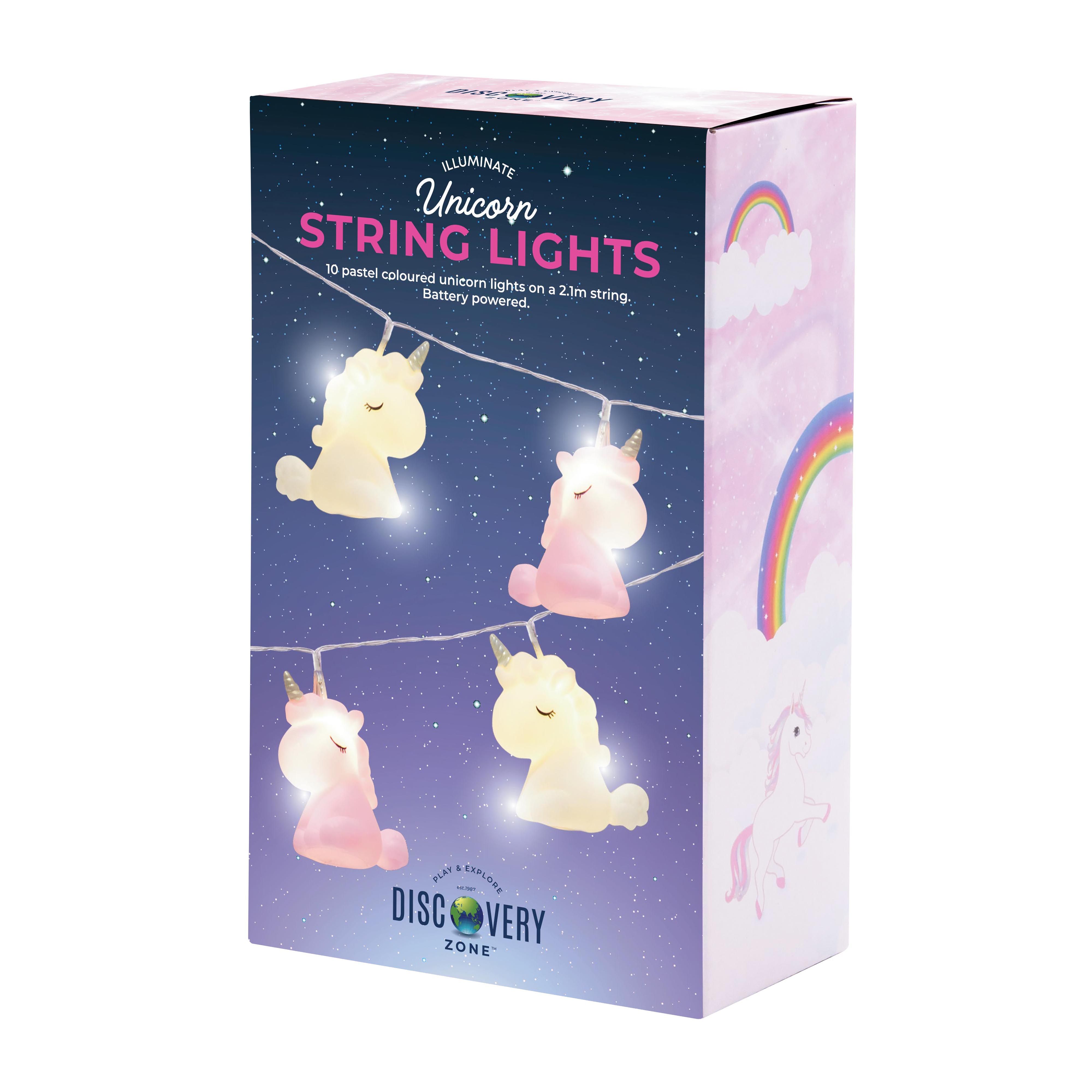 10 pastel coloured unicorn lights on a 2.1m string.