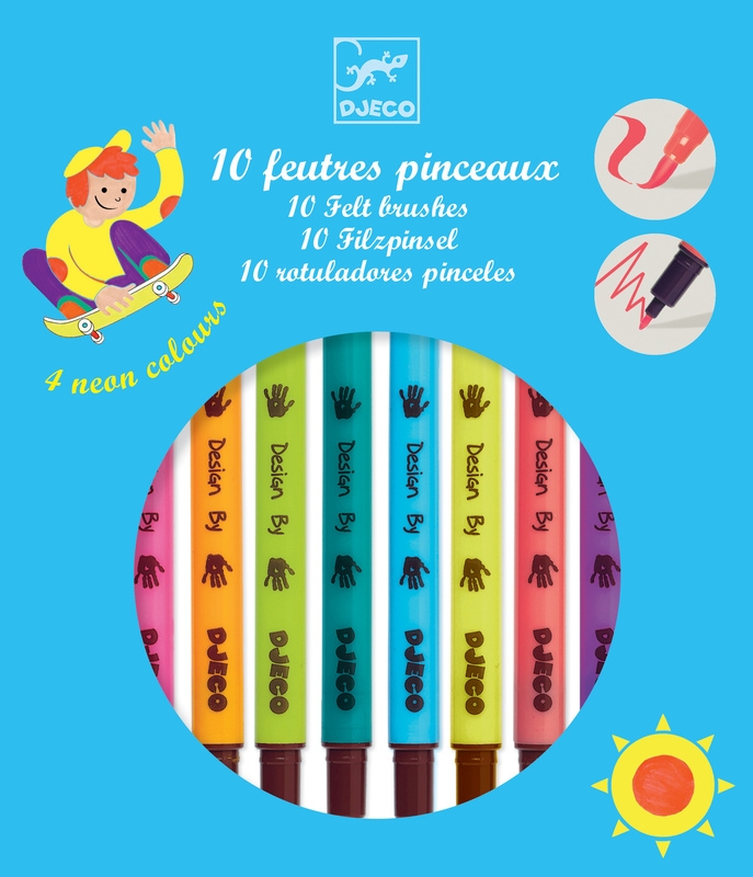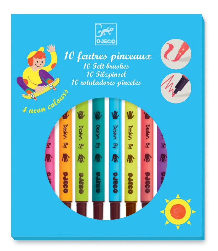 A set of ten bright pop colour brush-tip felt pens. Features four bright neon colours to make pictures pop!