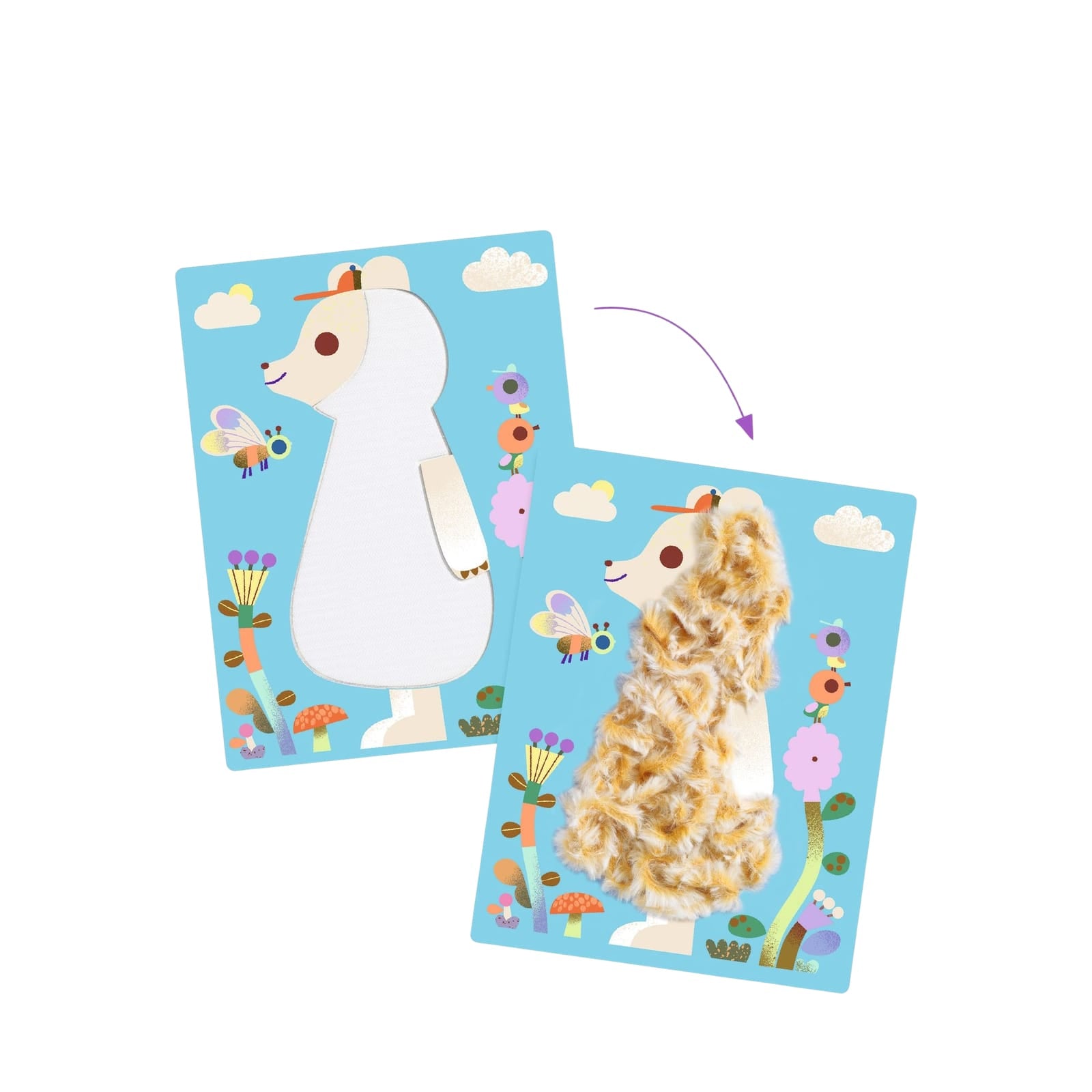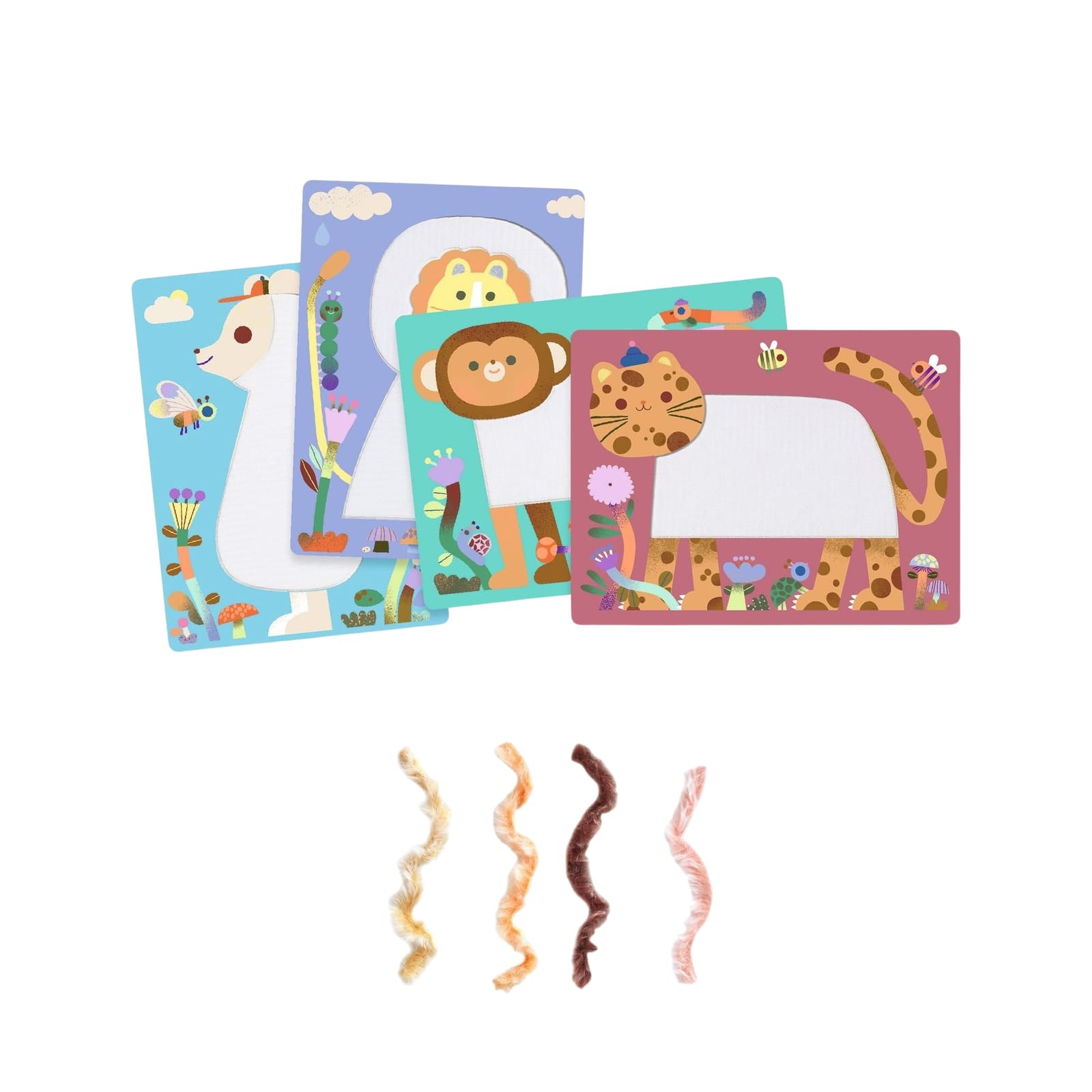 An activity as cute as a cuddly toy. Children place pieces of soft wool on the Velcro areas to create adorable animals.