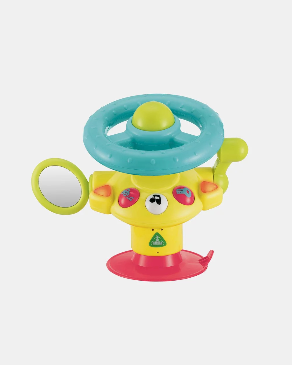 Enjoy fun flashing lights, engine sounds and two happy tunes. Start the engine and let’s go on an adventure. Turn the steering wheel, beep the horn and check your reflection in the side mirror! Steer left or right to see the indicators flash. Attaching easily to most highchair trays or flat surfaces with a suction cup, this fun steering wheel makes waiting for meals much more fun!