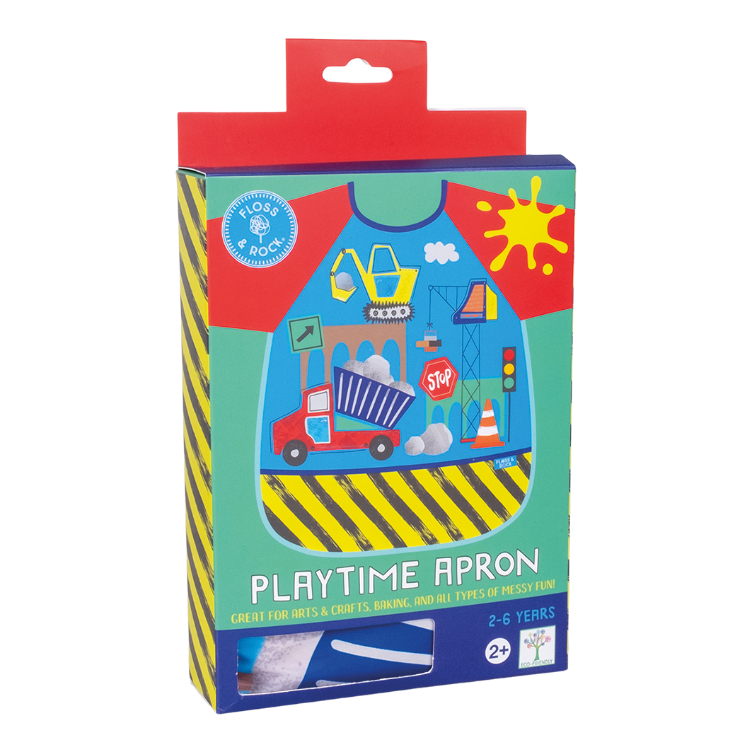 Unleash your child's creativity with the Floss & Rock Playtime Apron in the dynamic Construction design. Perfect for arts and crafts, baking, or imaginative play, this apron is adorned with vibrant construction vehicles and tools, sure to inspire budding builders. Made from durable, easy-to-clean materials, this apron features full-length arms to keep sleeves spotless, an adjustable neck and waist fastening for a comfortable fit, and a handy front pocket for storing tools or treasures. Machine washable for easy care, this apron is ideal for children aged 2 to 6, ensuring your little one stays clean and stylish during every adventure. Let your child’s imagination soar as they embark on creative building projects with this practical and charming addition to their playtime wardrobe.