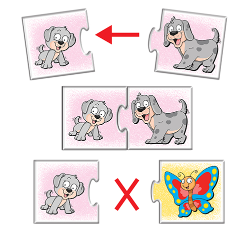 This colourful educational puzzle uses the “play and learn” technique to introduce the child to some of the animals and their babies. The child has to match the baby with its parent. The puzzle pieces are self-correcting, meaning that only the correct pieces will fit properly with each other. This ensures that the child learns the concept correctly.