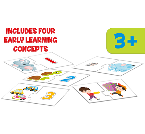 This unique pack helps your child learn and discover four different concepts - numbers from 1 to 10, colours, opposites and shapes - all in a fun and exciting manner.