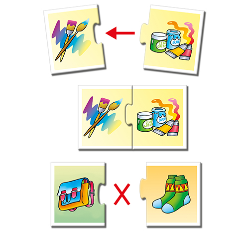 This colourful educational puzzle uses the “play and learn” technique to introduce the child to the concept of objects that usually go together, for example, Bread and Butter. The puzzle pieces are self-correcting, meaning that only the correct pieces will fit properly with each other. This ensures that the child learns the concept correctly.