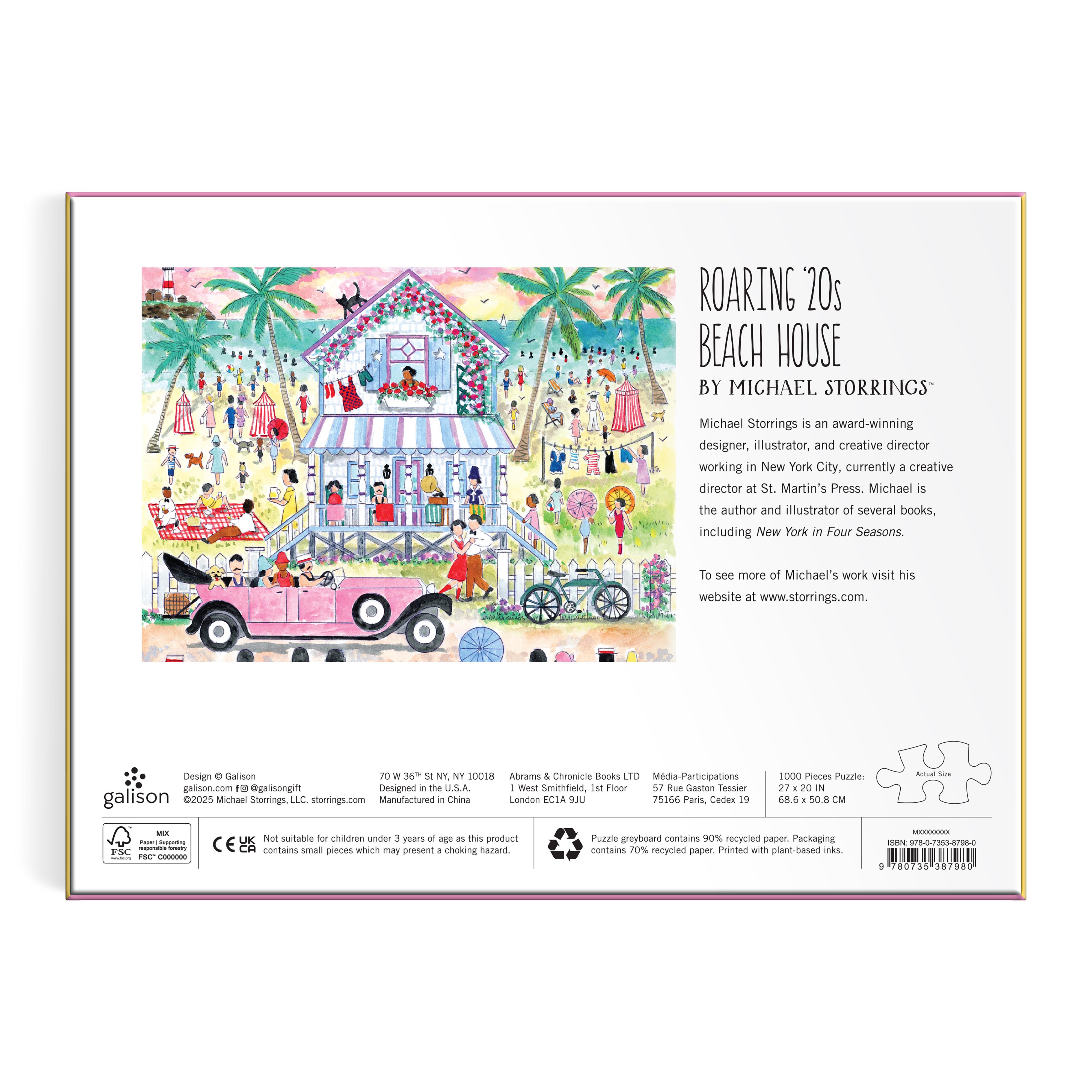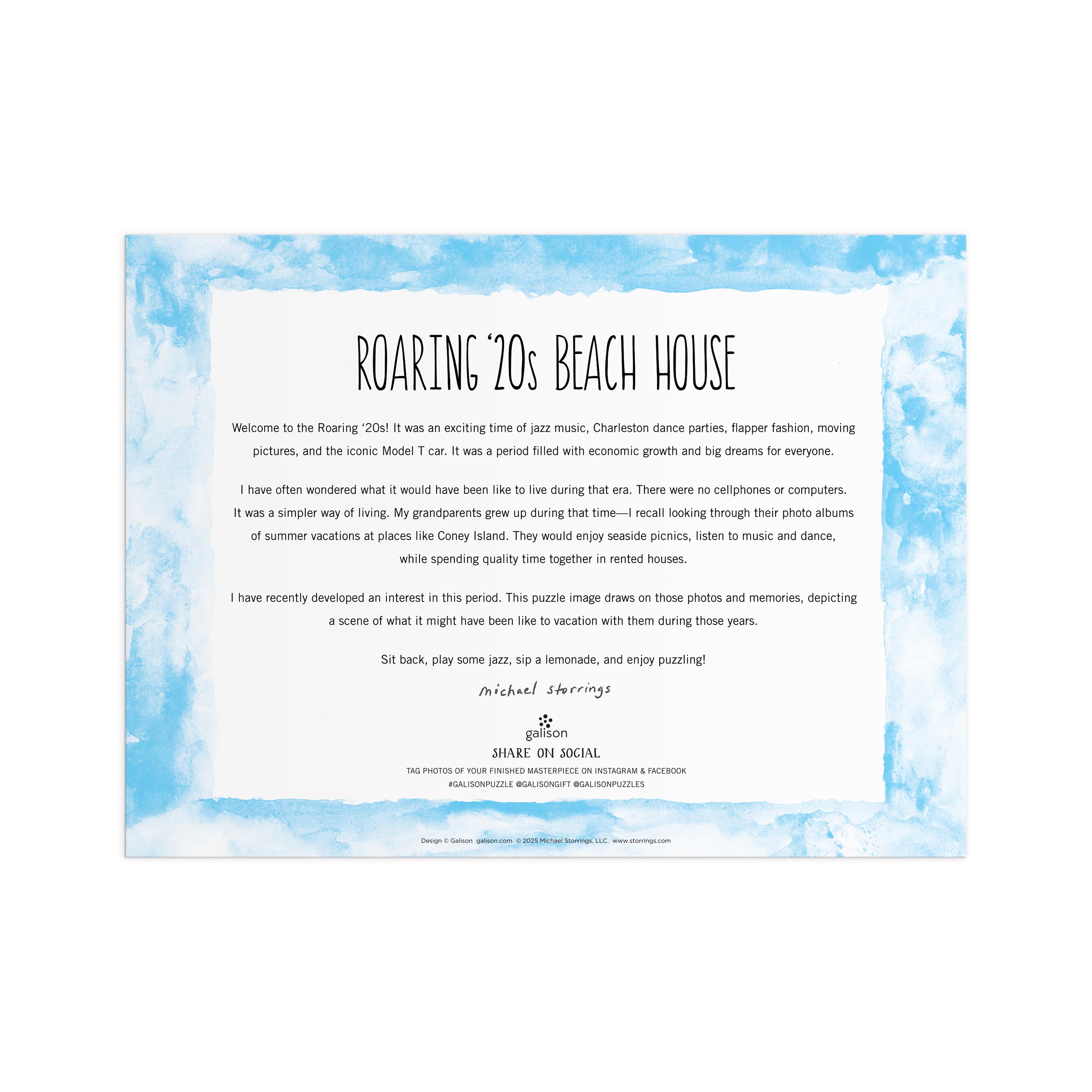 Step back in time to the roaring twenties—beach edition—with the Summer Beach House 1000 Piece Puzzle by Michael Storrings. This beautifully detailed puzzle captures the carefree elegance of a 1920s seaside escape, complete with vintage swimsuits, colorful striped cabanas, charming beach cottages, and parasols dotting the sand. Every piece you connect pulls you deeper into an era of leisurely afternoons, salt-kissed breezes, and old-fashioned summertime charm.