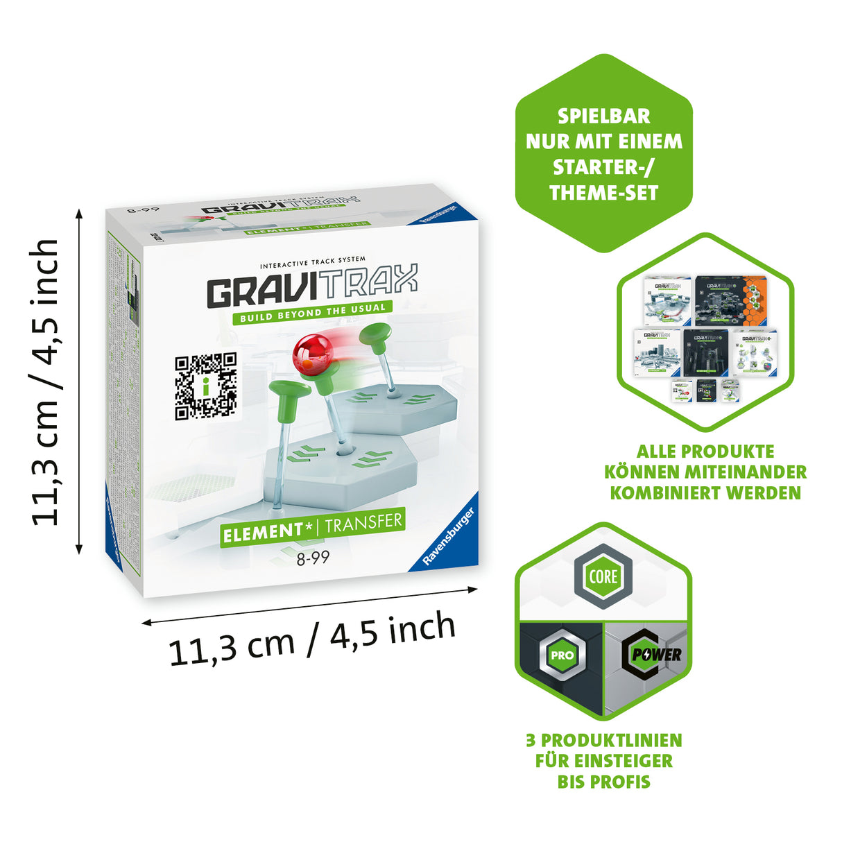 The GraviTrax track system can be extended indefinitely with extra track packs and add-on’s – each sold separately. This set is suitable for 1+ players, ages 8 years and up. Fully complies with all necessary UK and EU testing standards. This Set includes 3x Transfer Bases, 1x Long Rail, 2x Medium Rails, 3x Short Rails & Instructions