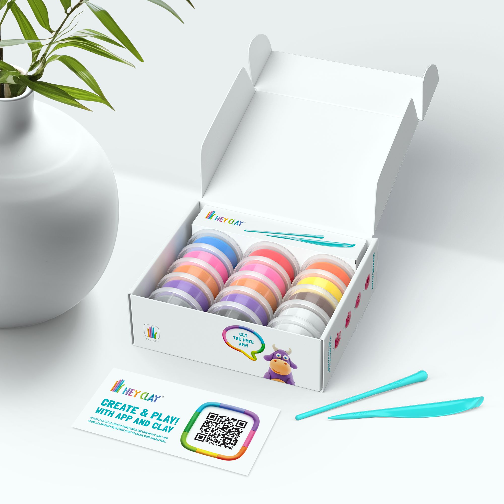 Colorful modeling air-dry clay, 15 cans with fun interactive app for kids aged 3+ years.