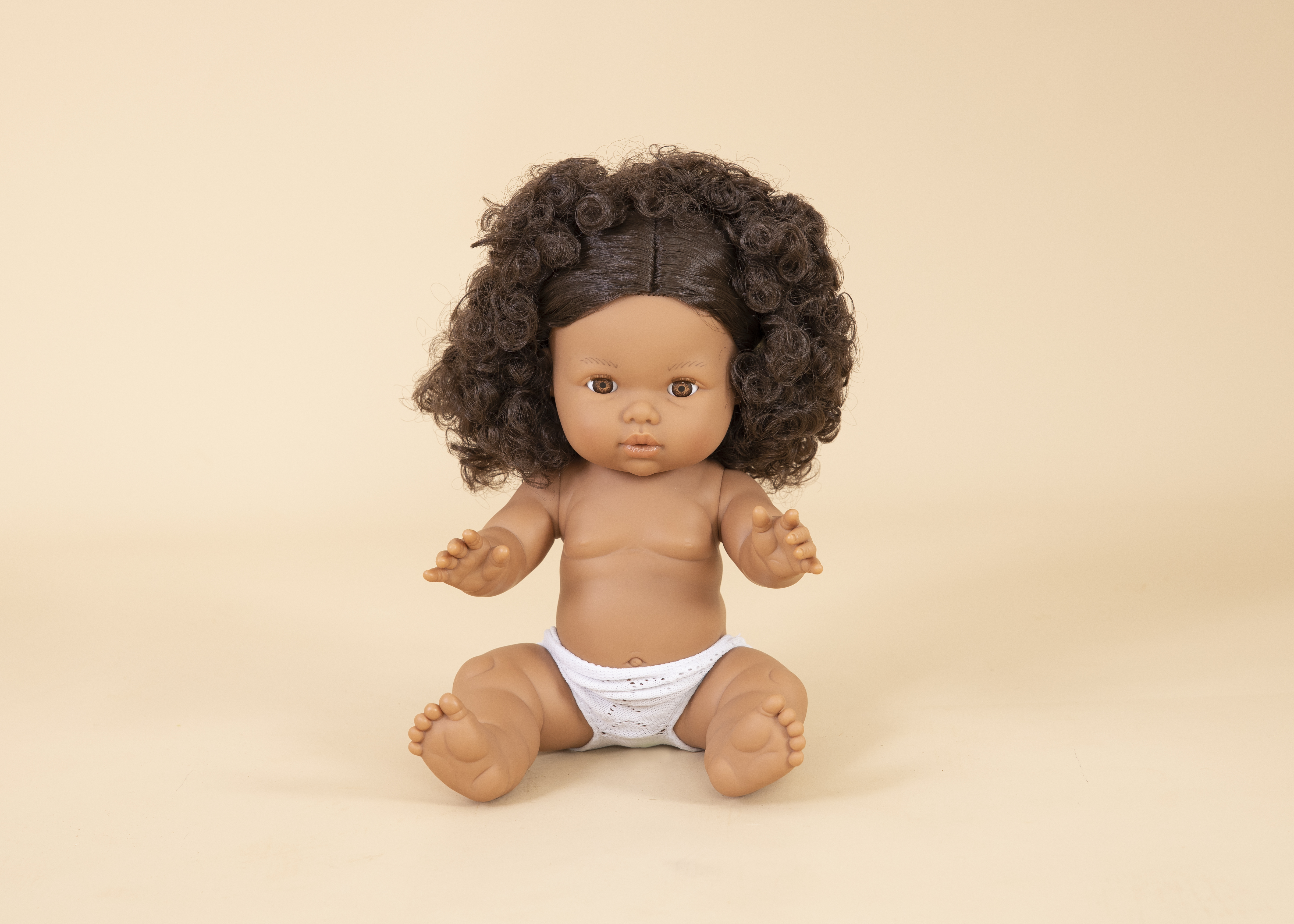 Meet Zaara, a joyful and confident spirit from the Mini Colettos collection. With warm brown eyes and beautiful brunette curly hair, Zaara is a 34cm Hispanic doll lovingly handcrafted to reflect real-world beauty and inspire kind, imaginative play.