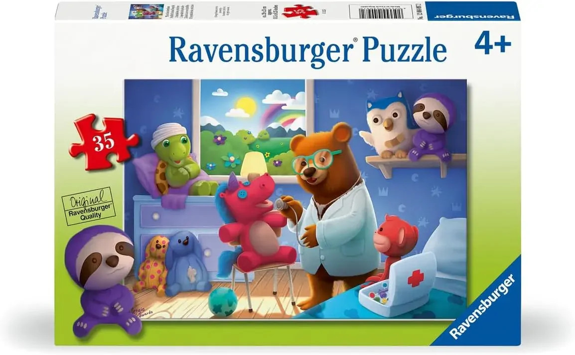 The Stuffed Animal Hospital 35 Piece Puzzle is a heartwarming and engaging puzzle designed for young children who like to play with toys and imagine creative scenarios. This puzzle depicts a scene of a soft toy hospital where favourite plush animals are cared for and cared for. It is perfect for children who like to play role play and care for their stuffed animal friends.