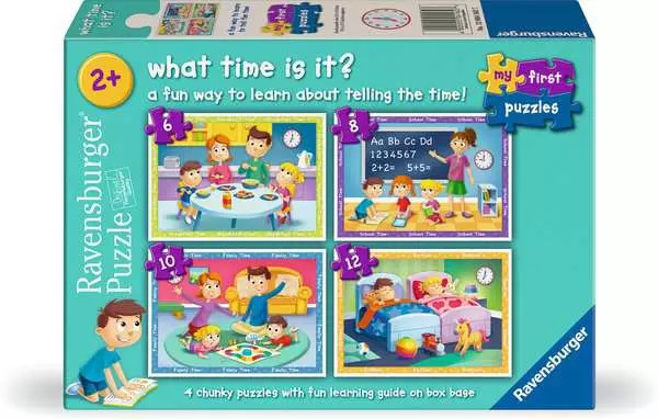 This 4-in-a-Box Jigsaw Puzzle for children is a delightful and educational puzzle designed to help young learners understand the different parts of a day. This puzzle features four distinct puzzles, each representing a different segment of a typical day: breakfast, school, family time, and bedtime. Once the puzzle is complete, talk about what is happening in the picture. This helps children learn about daily routines and the importance of different times of the day.