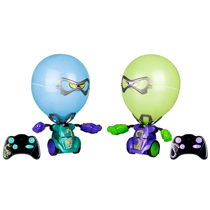 Get ready to challenge your family and friends to the most epic balloon-popping battle ever! Your Robot Kombat Balloon Puncher is an action-packed, balloon-bursting, robot combat game. Kapow! With the help of your remote control, you'll need lightning fast actions to throw jabs and punches until you pop your opponent's balloon! Each robot is equipped with party lights and punching sounds that will truly tansform your gaming experience. Let the fight begin! There are 5 different spinning actions that you can use to land the final blow, including the ever-popular power fist with combo punch! Choose between one of two game modes: Challenge mode: Play independently and battle with A.I. (a virtual opponent) Versus mode: Battle against a friend or family member (each robot is set to a different channel so they won't interfere with each other) Your kit includes: 2 x robots with controllers and balloons mounts (fitting almost all types of balloons) 24 x multi-coloured balloons and 2 x pairs of elastic goggles for your balloons Note: Robots come in randomly assorted colours. Please ensure you choose a hard, flat surface to begin your battle. Recommended for ages 5 and up. Approximate dimensions of each robot: 10cm (w) x 10cm (d) x 15cm (h) - excluding fists with bursting gear. Requires 3 x AA batteries to power each robot, and 2 x AAA batteries for each controller (not included).