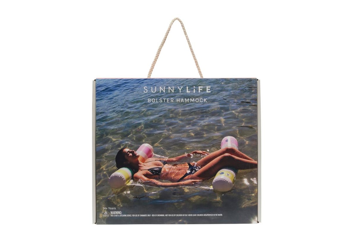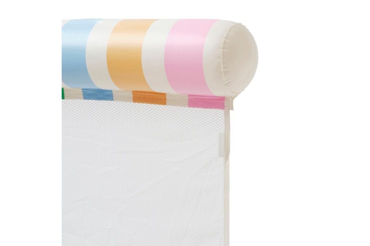 Relax into summer with the Pastel Gelato Bolster Hammock. Featuring a bold sunburst print and a confectionary colour scheme, this vintage-style inflatable is a must-have for a summer of fun. Designed to be used as both a seat and lounger, the Hammock Float features an inflated bolster on either side and a net centre to keep you cool, comfy and supported all summer long! Now lay back, relax and drift the day away to pastel perfection.