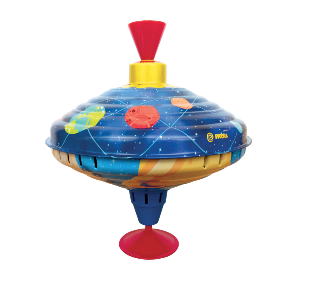 Combine playing and learning with our ‘Space’ spinning top. Pump the handle up and down to see the top spin and to hear it hum, as it builds up speed. Turn it upside down and discover the planets and the solar system. A classic toy with an educational twist!